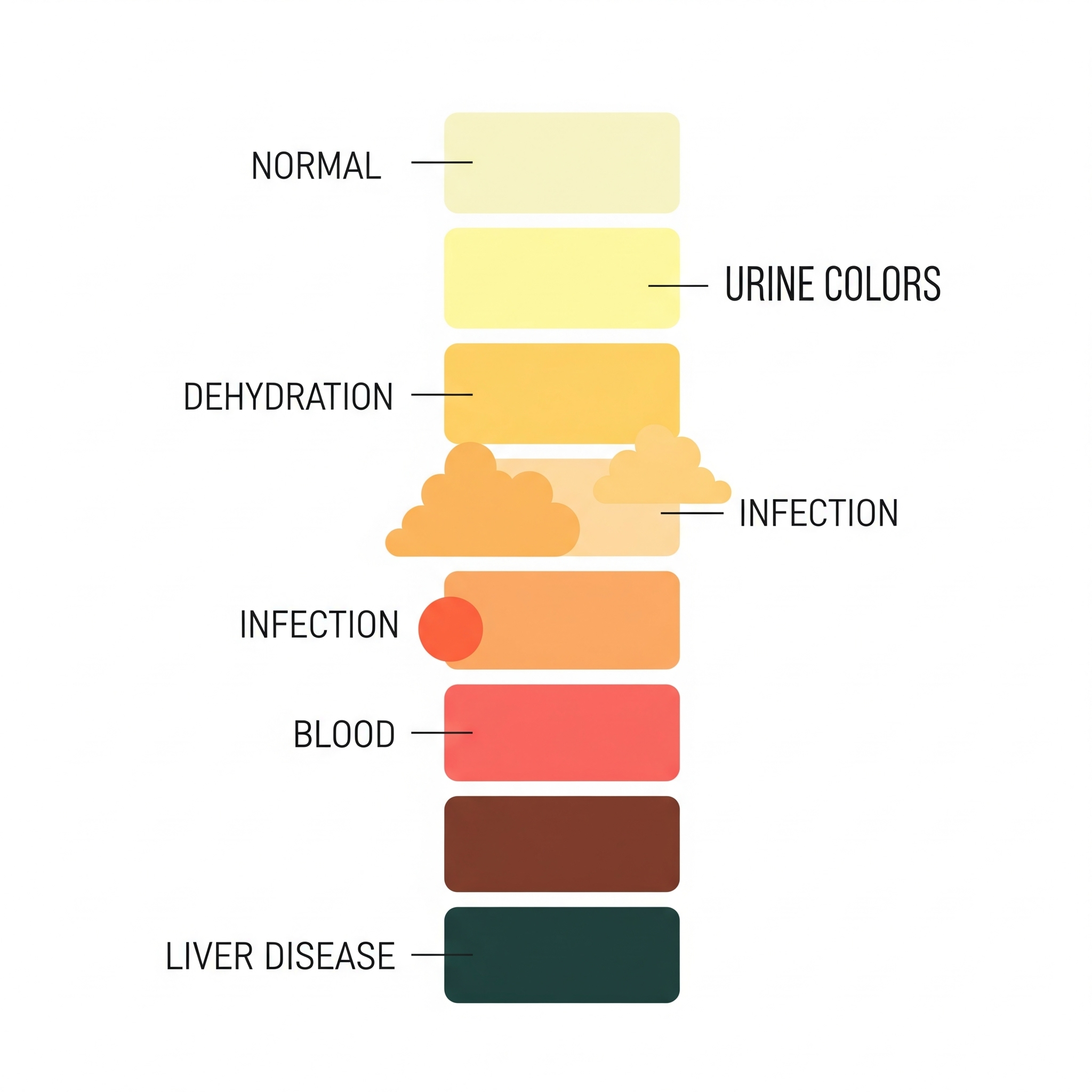 Normal urine should be light yellow — clear like diluted palm wine. Anything outside this could be a warning.