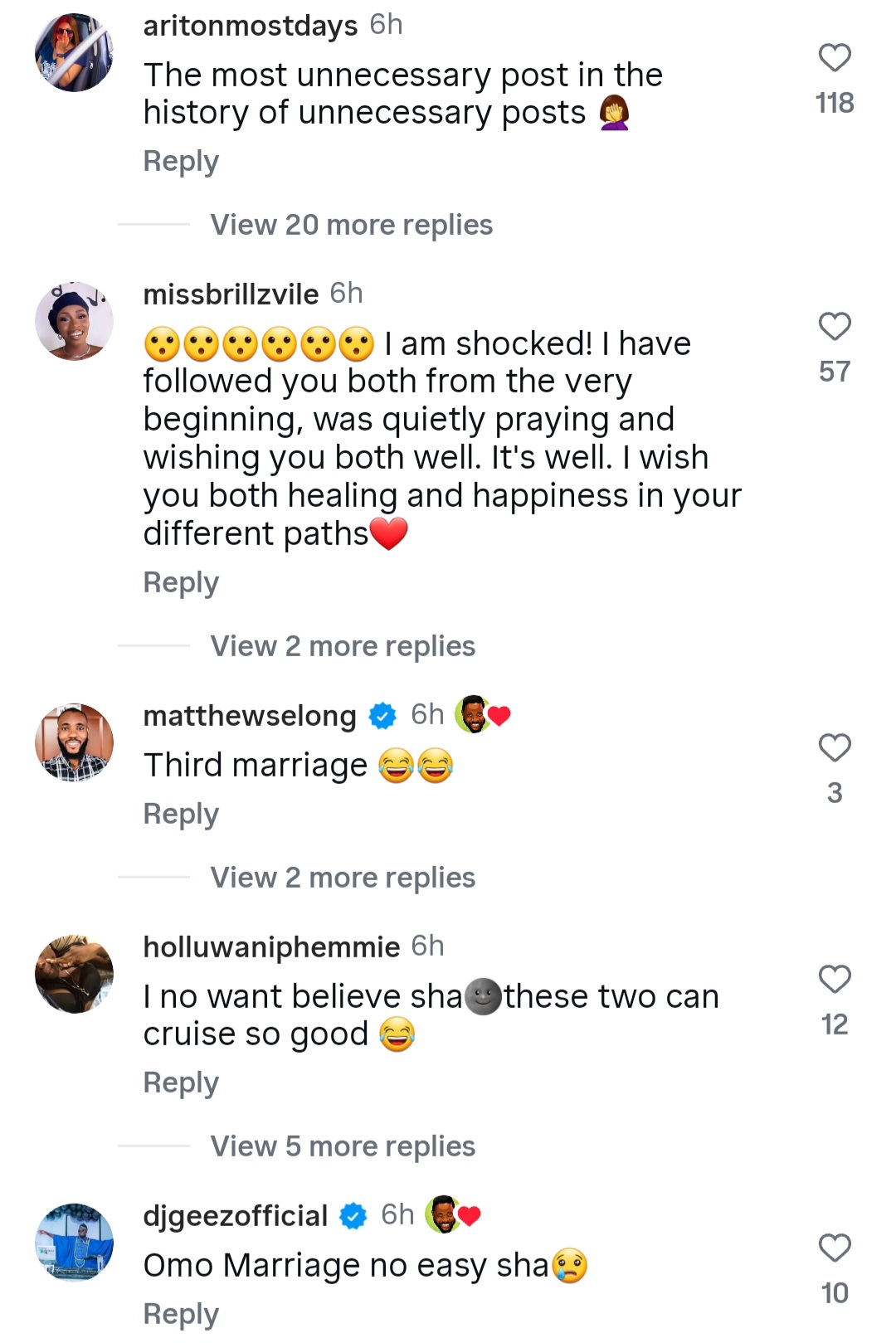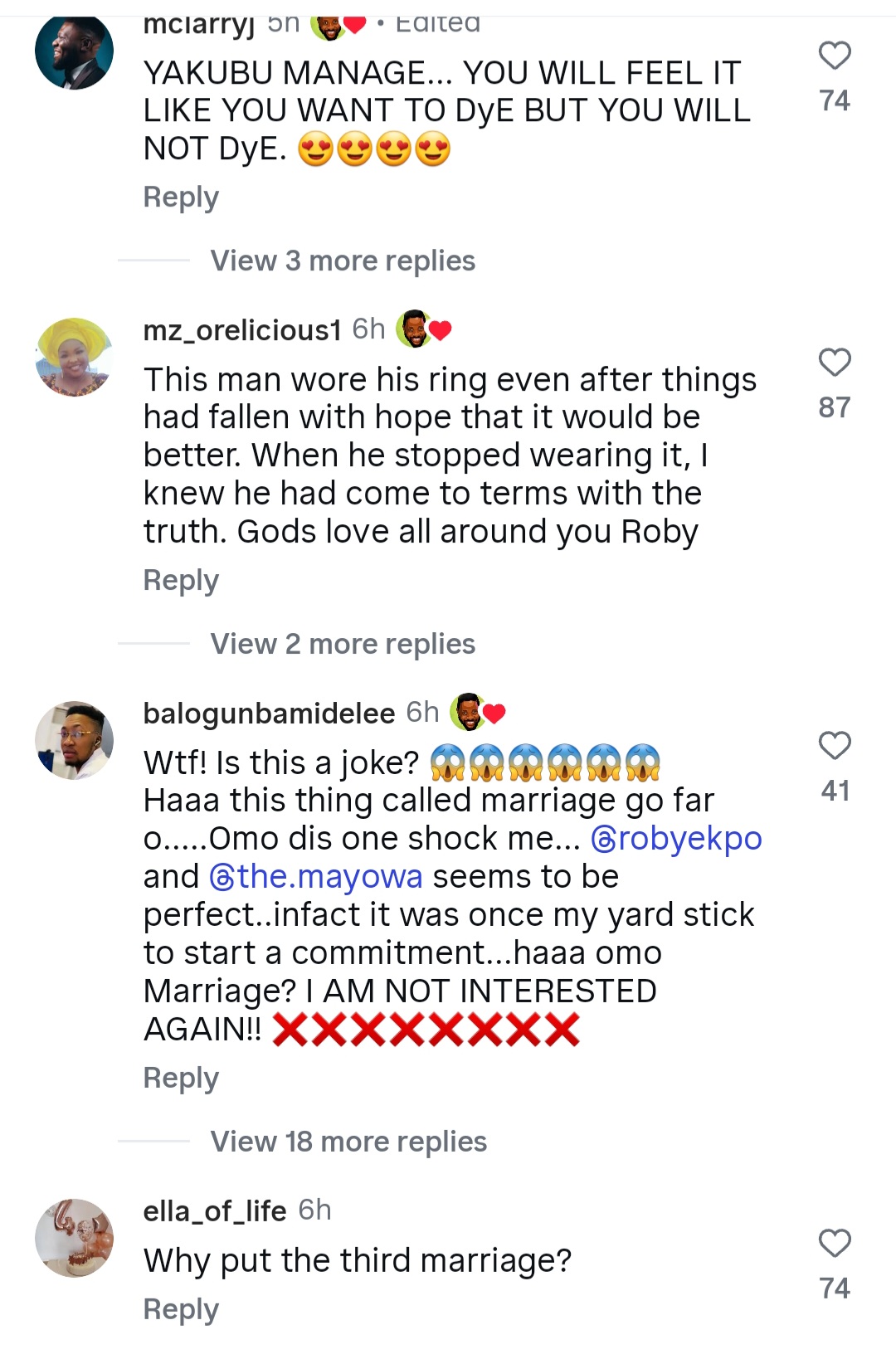 This came as a shock to many Nigerians who thought she and Roby were still married, considering that Roby still wears his wedding ring.